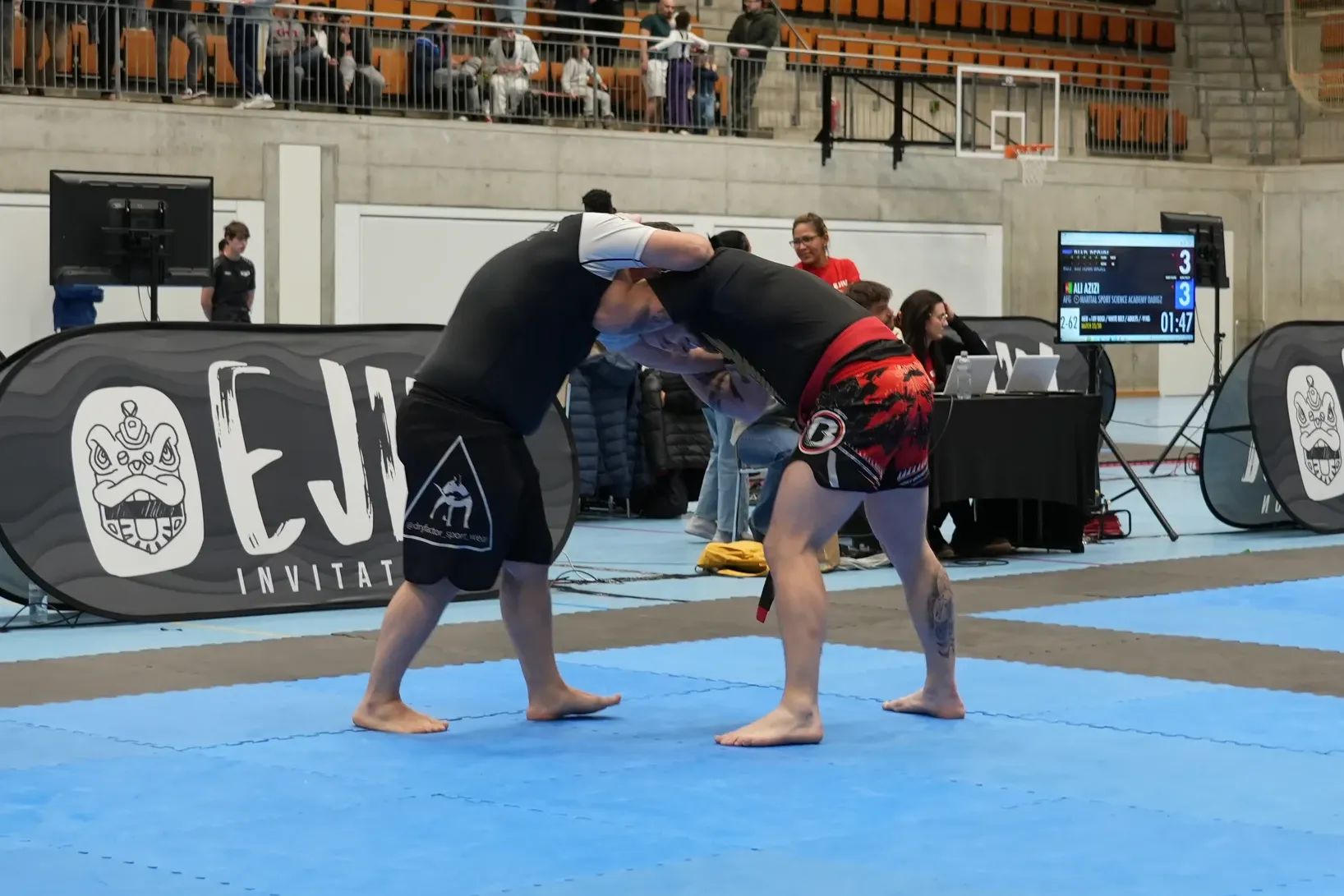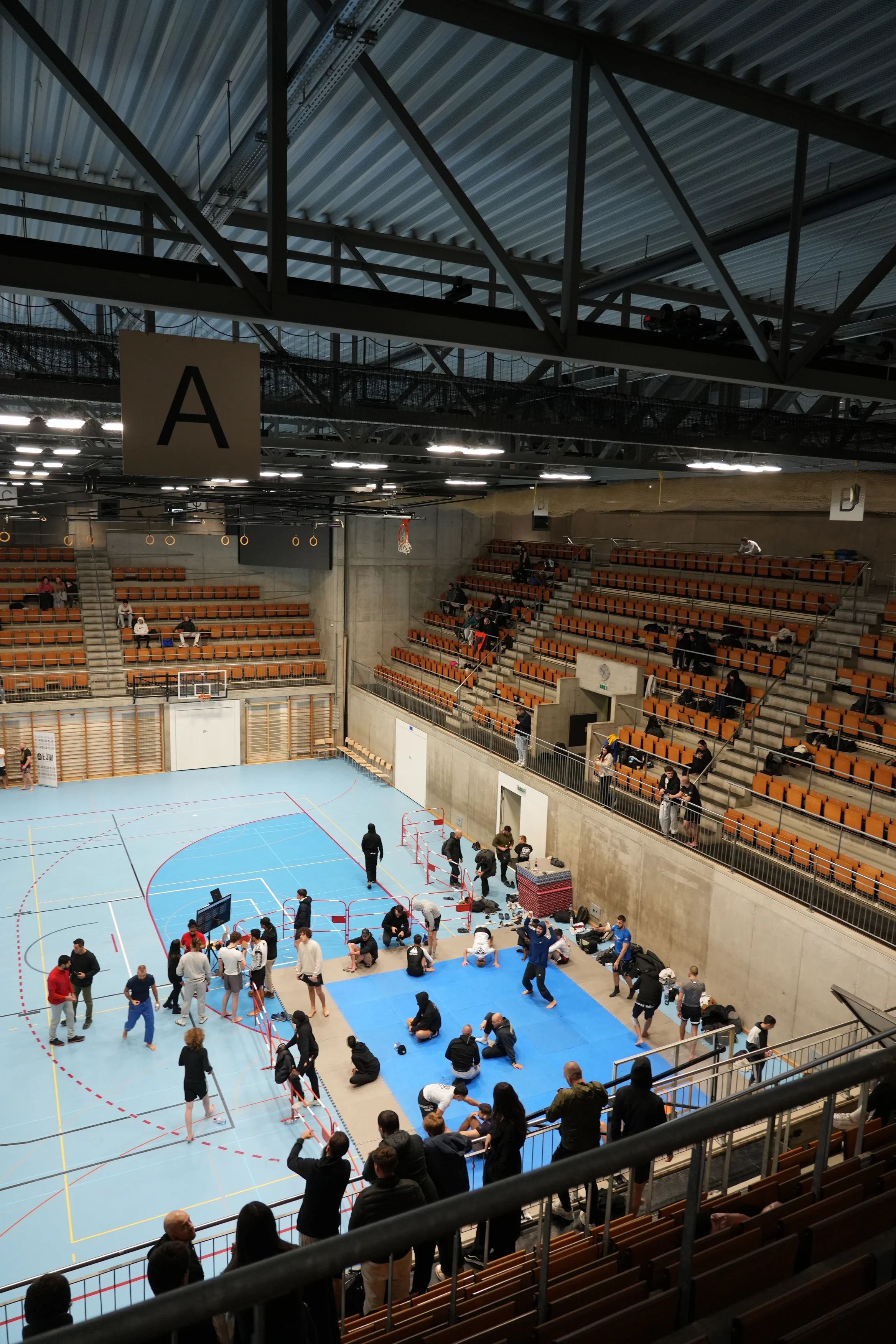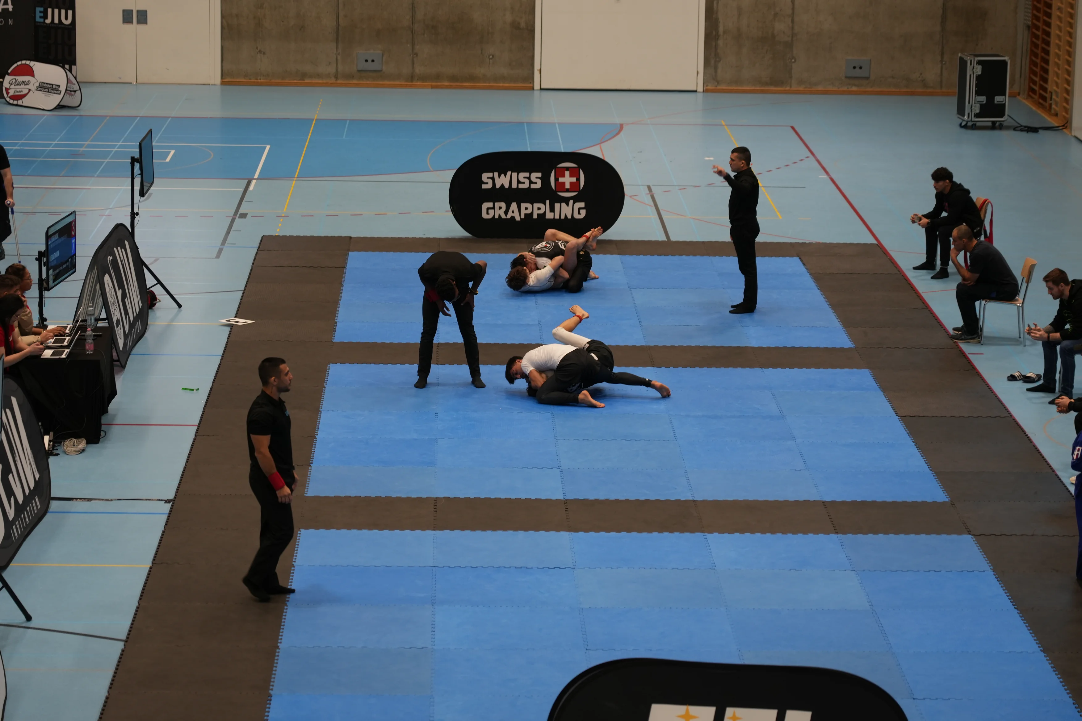 Heute war ich in der Wankdorfhalle in Bern. Trotz der modernen und großen Halle startete das Turnier mit einigen Schwierigkeiten. Die ersten Verspätungen gab es bereits beim chaotischen Weigh-in um 09:30. Kinder und Erwachsene teilten sich anfangs die Matten, jedoch nicht den Aufwärmbereich, was zu weiteren Verzögerungen bei den Kämpfen der Erwachsenen führte. Trotz der großzügigen Halle wurde nur ein sehr kleiner Bereich für die Grappling-Athleten zum Aufwärmen bereitgestellt, sodass das Aufwärmen überwiegend in den Gängen der Wankdorfhalle stattfand. Dies führte wiederum dazu, dass Athleten aufgrund der ständig wechselnden Kampfzeiten häufig verspätet zu ihren Kämpfen erschienen.