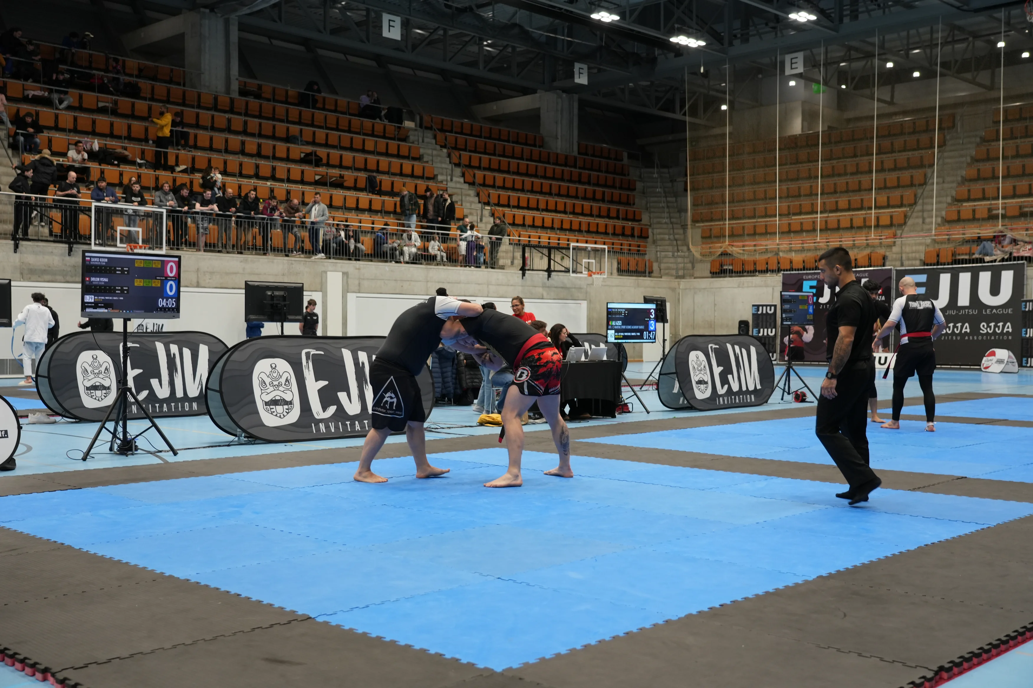 Nichtsdestotrotz lieferten sich die Athleten spannende Duelle. Die Stimmung schlug dabei stellenweise ins Dramatische um: Ein Kämpfer brach seinem Gegner bei einem “Ankle Lock” das Schienbein, während ein anderer bei einer verzwickten Guillotine einschlief und mit Körpereinsatz wieder aufgeweckt werden musste.